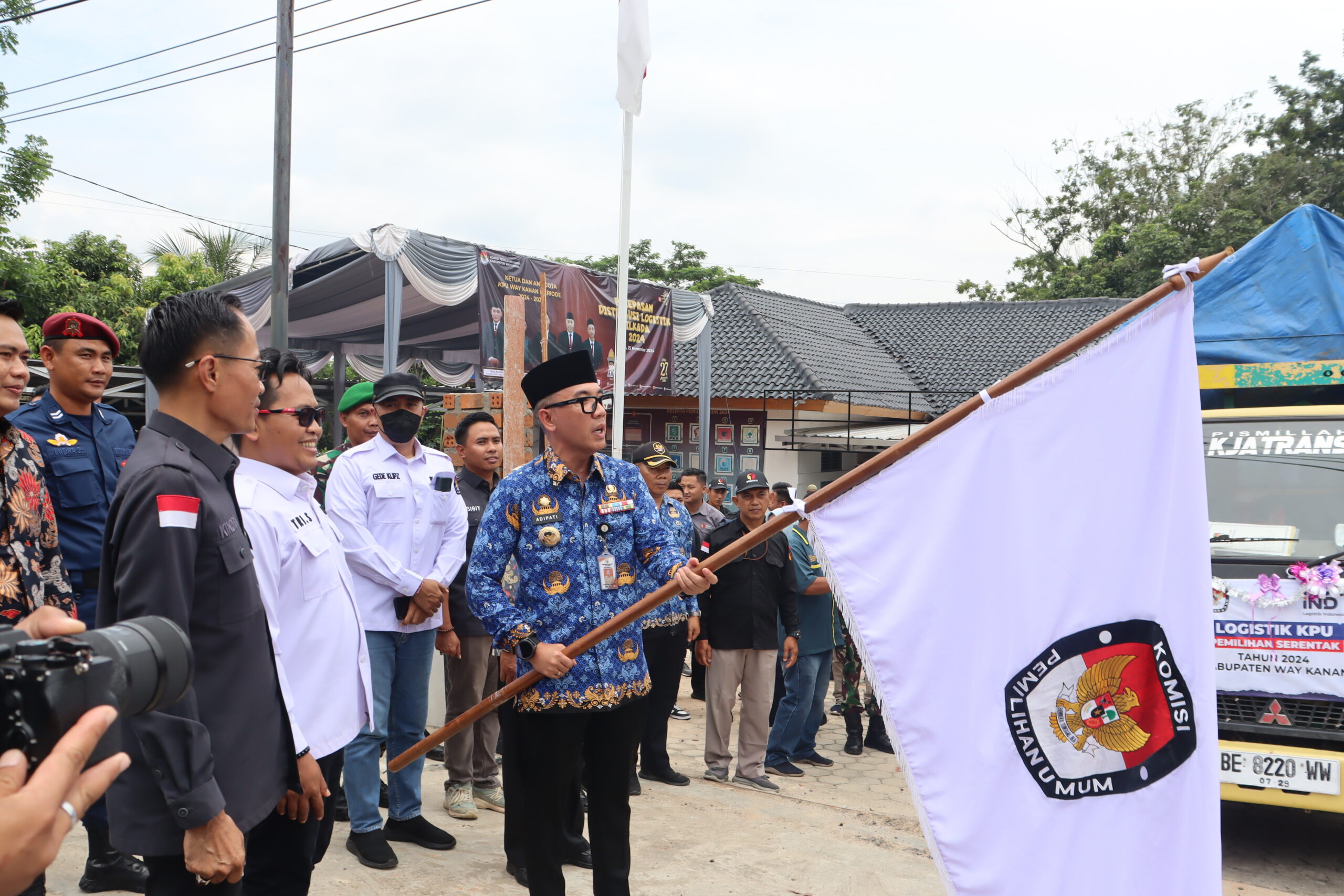 WAY KANAN (BL)– Bupati H. Raden Adipati Surya, S.H.,M.M menghadiri Acara Pelepasan Distribusi Logistik Pemilihan Umum Serentak Tahun 2024 di Halaman Kantor KPU Way Kanan, Senin (25/11/2024), yang dihadiri oleh unsur Kodim 0427/WK, unsur Polres Way Kanan, Kejaksaan Negeri Way Kanan, Kepala Kantor Kesatuan Bangsa dan Politik, serta Ketua KPU dan Ketua Bawaslu Kabupaten Way Kanan.